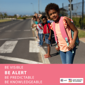 Being alert is your best defense on the journey to school and around your community. Keep your eyes up, stay off your phone, and listen for traffic. Remember to look left, right, and left again before crossing the street. Staying aware helps everyone spot potential hazards early and react safely.